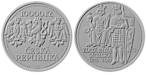 Soutěž na umělecký návrh svým způsobem výjimečné zlaté mince nominální hodnoty 10 000 Kč s námětem „Zlatá bula sicilská“ vyhlásila Česká národní banka v prosinci 2010 s uzávěrkou 11. března 2011. Vyhlášení soutěže bylo veřejné prostřednictvím internetu, od 17 výtvarníků přišlo celkem 29 sádrových modelů.