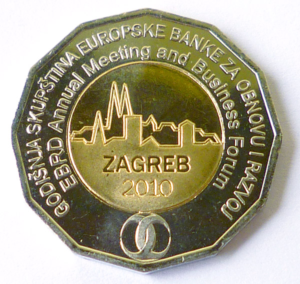 Chorvatsko vydalo 12. května 2010 v pořadí devátou dvacetipětikunovou pamětní minci. Mince byla vydána k příležitosti zasedání EBRD v Záhřebu. Celkem bylo vydáno 20 000 mincí.